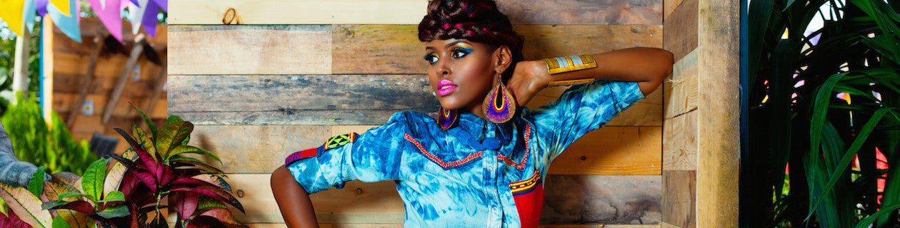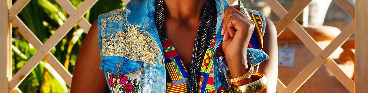 Sheikha BTB Denim Jacket This striped Rib Denim Jacket is inspired by Sheikha Arabic art fused with tribal Ethiopian patterns. Pair it with … a pair of jeans or chinos and you are ready for a day/evening around town. Material: Denim/Polyester Colour: Blue / multi Sizes: L Size in image: L Model size: Washing Instructions: Machine wash...