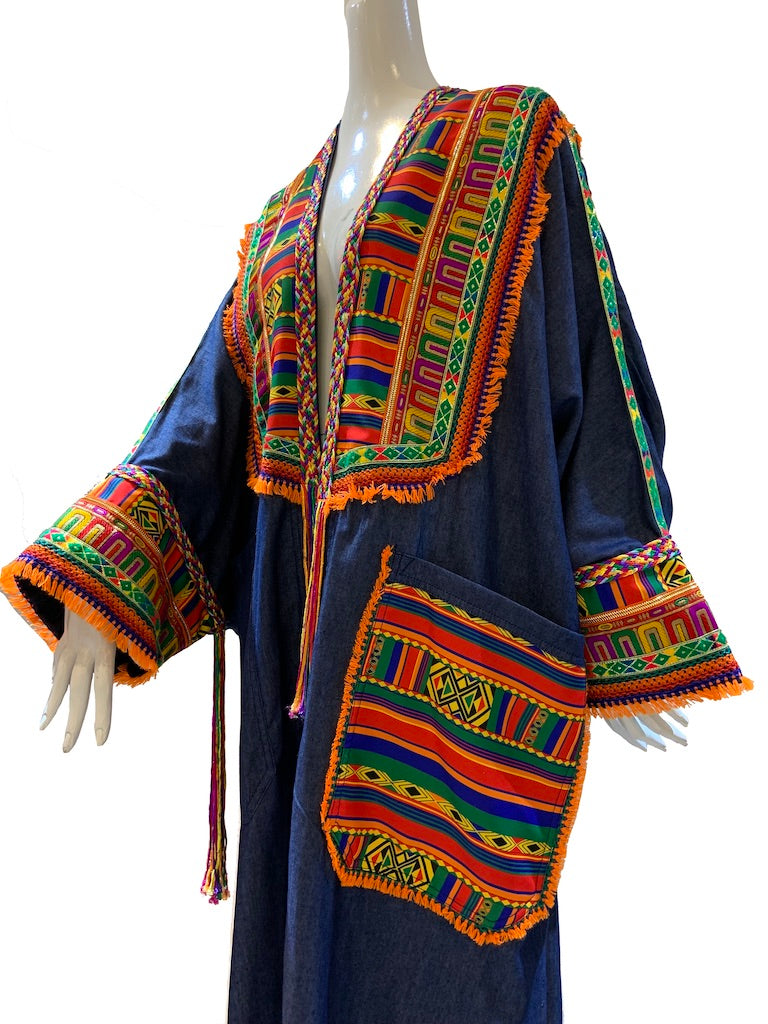 Finchitua combines elements from the Arab countries, Asia, and Africa in a single piece of clothing designed for the modern woman/Men. features an open front and Finchitua pattern. The two front pockets add to its fun and casual look. Buy this Bisht online today to add to your unique collection.