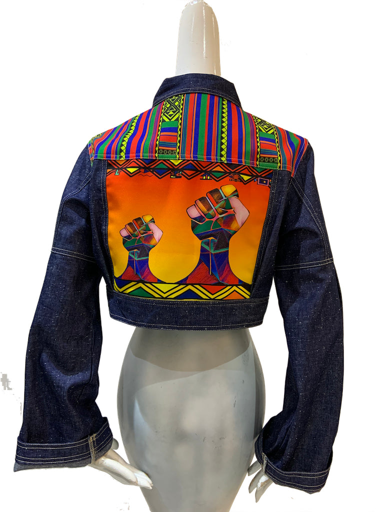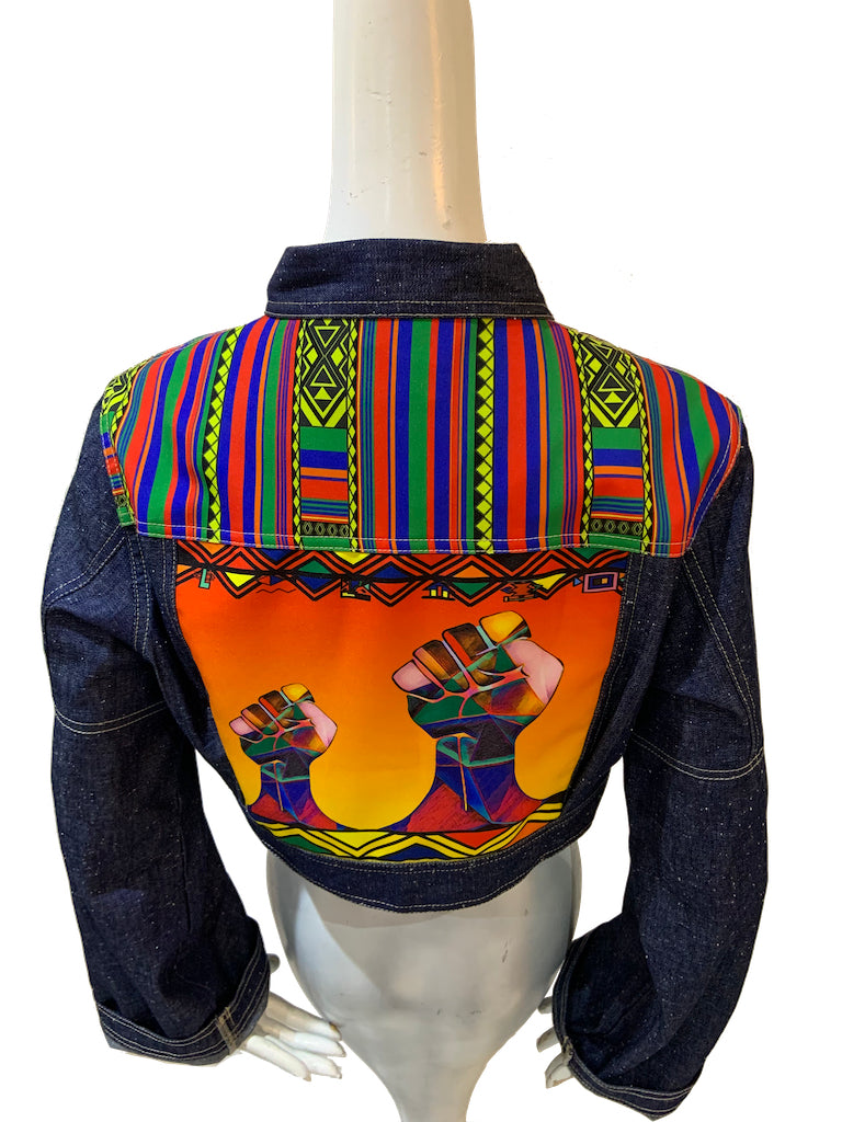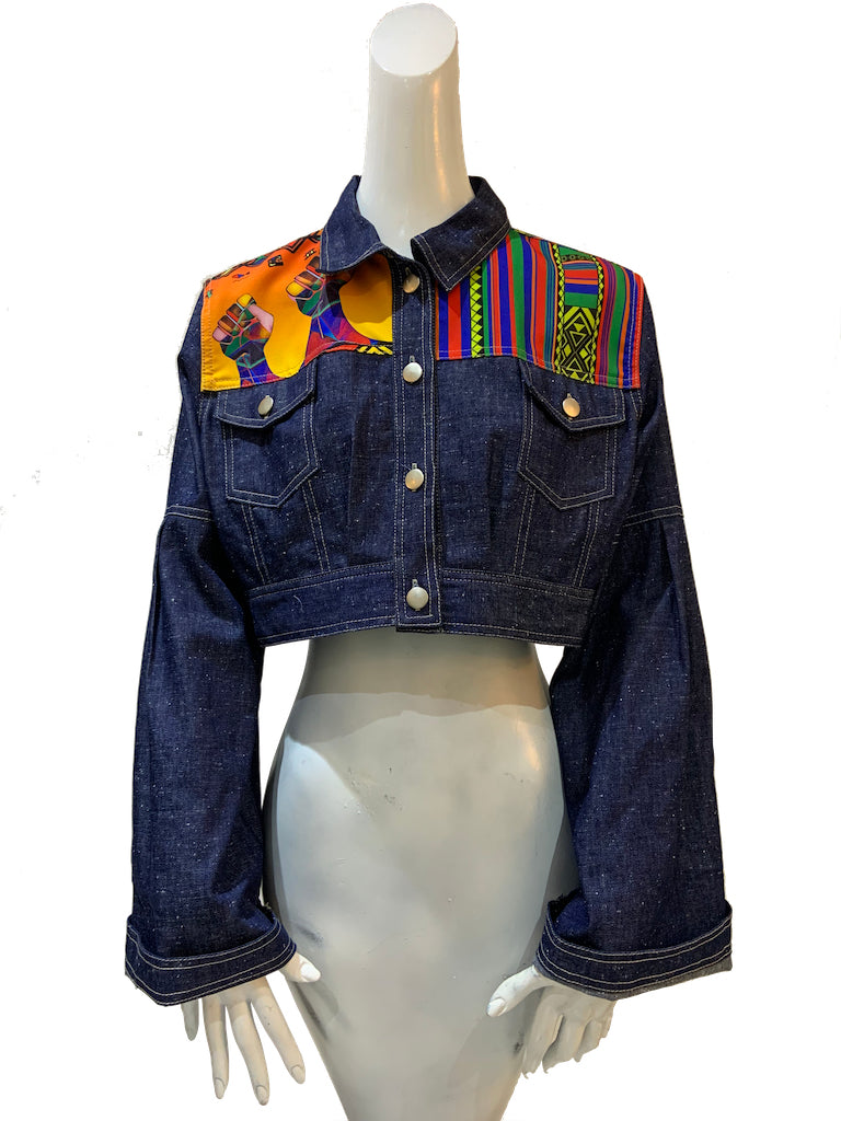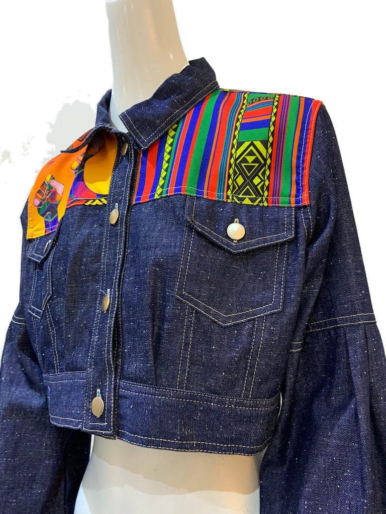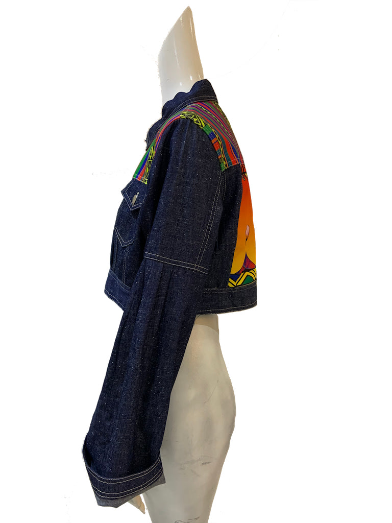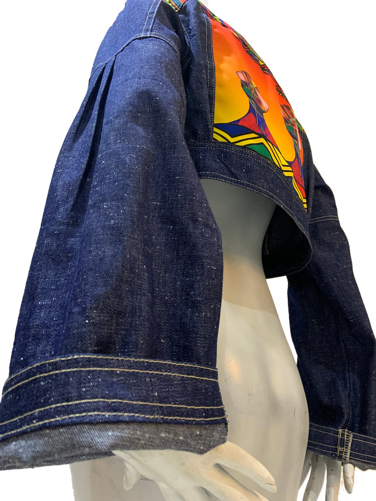 This Mido Image denim jacket is combined with tribal patterns, laces, sometimes leather patches. The cropped jacket is a long and wide-sleeved - front button.