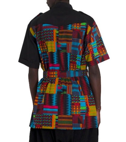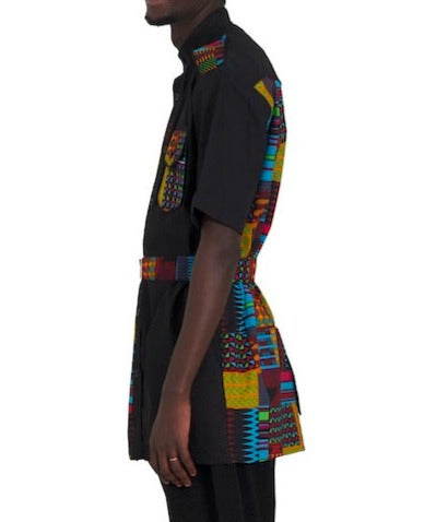Sarian is a Chinese collar men's short-sleeved shirt with a Front button opening has two front pockets and a belt.
